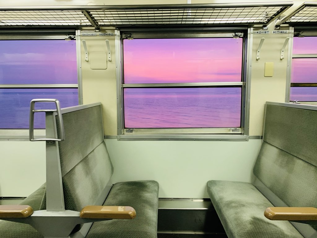 帰りの五能線最終、車窓がエモエモすぎる件 pic.twitter.com/lHP2xUGAmZ